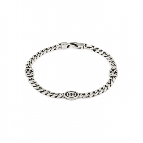 Bracciale Gucci Unisex YBA678660001 Bracciale unisex Gucci in argento 925 della collezione Interlocking. Bracciale a catena maglia grumetta. Referenza: YBA678660001 Le iniziali di Guccio Gucci definiscono questo anello nella forma del logo GG. L’emblematico simbolo decora questo bracciale in argento con catena groumette. Articolo spedito con astuccio originale Gucci