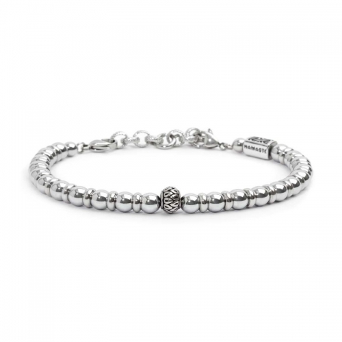 Bracciale Marlù 13BR117 Bracciale in acciaio con sfere di ematite alternate a dischetti di acciaio, elemento centrale a forma cilindrica in acciaio con trama con black oil. Ad una estremità elemento rettangolare in acciaio con trama con black oil, sul fronte il logo Marlù, su retro la parola Namastè. Chiusura con moschettone su entrambi i lati. Estensione con catena rolò con trama, removibile e/o regolabile tramite moschettone tondo al centro.. Lunghezza totale 22,8 cm, regolabile da 22,8 cm a 19,2 cm. Referenza: 13BR117 Articolo spedito con astuccio originale Marlù