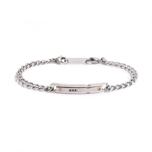 Bracciale Marlù 30BR0020 Bracciale catena della collezione Marlù Icons da uomo. Colore: argento. Il gioiello è in acciaio inossidabile 316L composto una catena grumetta e una targa centrale con 3 zirconi neri. Chiusura a moschettone regolabile da 19 a 21 cm. Referenza: 30BR0020 Articolo spedito con astuccio originale Marlù