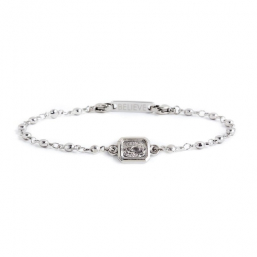 Bracciale Marlù 33BR0003 Bracciale rosario realizzato in acciaio con medaglietta rettangolare centrale raffigurante sul fronte la Madonna, sul retro la scritta “Believe”. Tag finale removibile da 18 mm con logo “Marlù gioielli” sul fronte e con scritta “Believe” sul retro. Lunghezza totale 21 cm, regolabile da 21 cm a 19 cm., Collezione: Vision. Referenza: 33BR0003 Articolo spedito con astuccio originale Marlù