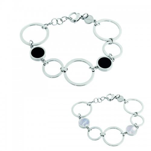 Bracciale con cerchi in acciaio con acrilico nero e madreperla. Referenza: 2BR0046