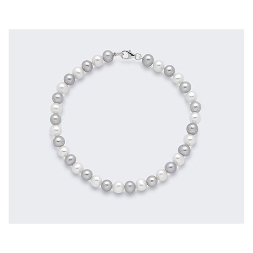 Bracciale Mikiko gioielli di perle coltivate bianche e grigie del diametro di 5,5-6 mm, con chiusura a moschettone in oro bianco 18 Kt. Referenza: MB0900O4FCBG055 Caratteristiche: Chiusura: Oro Bianco Diametro Perle: 5,5-6 mm Lunghezza Filo: 19 cm Caratteristiche Fisiche della Perla Coltivata Colore: Bianca/grigia Tipo Perla: Fresh Water Midus Lucentezza: Buona Forma: Tend. Sferica Superficie: Tend. Pulita Metallo: Oro 18Kt Questo prodotto verrà spedito con astuccio originale e garanzia internazionale con validità 2 anni.