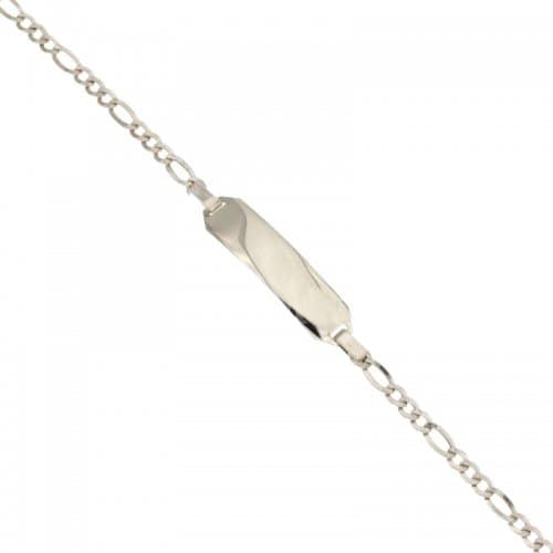Bracciale da bimbi in oro bianco 750/00 (18 kt) con targhetta, lunghezza 14 cm, targhetta ovale 0,60 x 2,30 cm, pesso 2,30 grammi. Referenza: 803321707342 Possiamo incidere gratuitamente la targhetta con nome, data o qualsiasi altra cosa; inserisci il testo da incidere nel campo commenti, durante la procedura d’ordine. Idea regalo per battesimo o comunione.