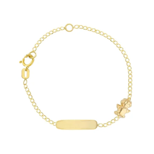 Bracciale per bimbi in oro giallo 750/00 (18 kt) con targhetta, lunghezza regolabile 12 o 14 cm, dimensioni targhetta 0,40 x 1,60 cm, peso 1,30 grammi. Referenza: GL-SON171426 Idea regalo per battesimo o comunione.