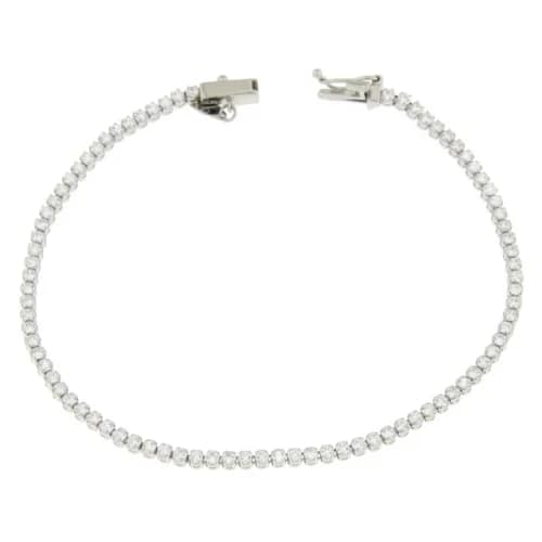 Bracciale Tennis Donna Oro Bianco GL-G21733991 Bracciale da donna modello tennis in oro bianco 18kt (750/00). Bracciale con pietre zirconi bianchi. La chiusura del bracciale è a cassonetto con sicura. La lunghezza del bracciale è di 19 cm. La larghezza del bracciale è di 0,20 cm. Il peso del bracciale è di 3,70 grammi. Referenza: GL-G21733991