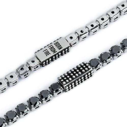 Bracciale Unisex Marlù 33BR0036N Bracciale in acciaio con catena tennis con cubic zirconia neri con spessore 4 mm. Al centro elemento con texture puntinata con black oil con incisa sul retro la frase “BORN FROM FIRE”. Sull’estremità elementi con texture puntinata con black oil. Referenza: 33BR0036N Articolo spedito con astuccio originale Marlù