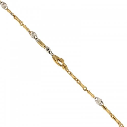 Bracciale da uomo a maglia tubolare  in oro giallo e bianco 750/00 (18 kt), lunghezza 21 cm, larghezza maglia 0,30 cm, peso 3,20 grammi. Referenza: 803321710598 Non è quello che cercavi? Scopri tutti i bracciali da uomo in oro o i nostri gioielli in oro