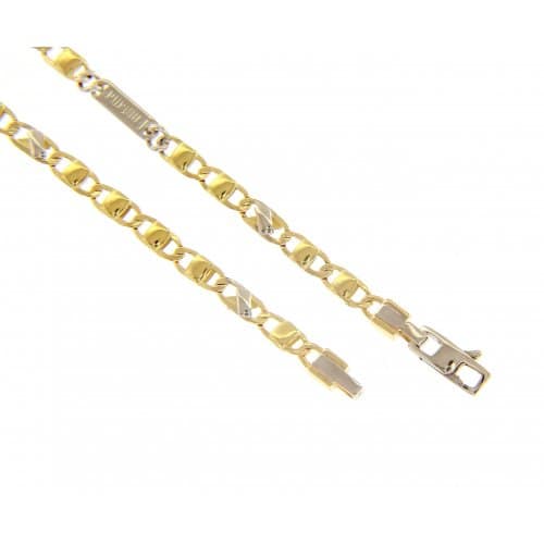 Bracciale da uomo in oro giallo e bianco 750/00 (18 kt), maglia con riportini, lunghezza 21 cm, larghezza maglia 0,30 cm, peso 3,50 grammi. Referenza: MFN303GB19