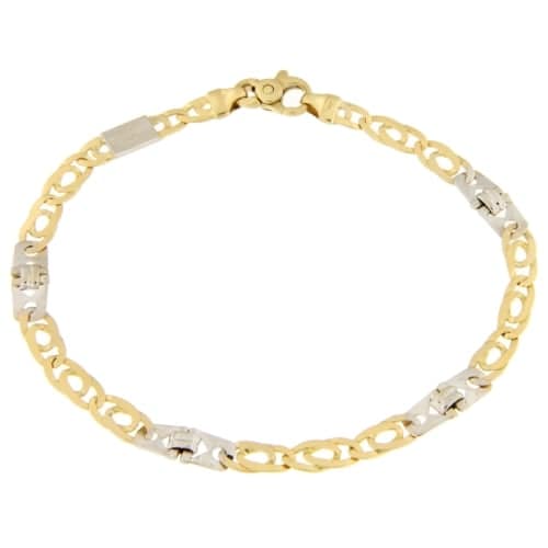 Bracciale da uomo in oro giallo e bianco 750/00 (18 kt), lunghezza 21 cm, larghezza maglia 0,50 cm, peso 9.30 grammi. Referenza: MMV100GB21