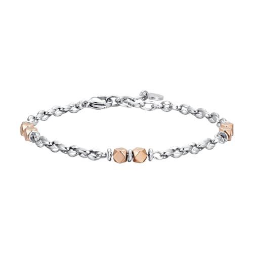 Bracciale Uomo Luca Barra BA1734 Bracciale Uomo in acciaio con ematite IP rose. Lunghezza: 19 + 3 cm. Spessore catena: 4 mm. Diametro ematite: 4 mm. Un gioiello versatile e di classe, perfetto per chi desidera aggiungere un tocco di eleganza al proprio outfit, sia per l’uso quotidiano che per occasioni speciali. Rendi il tuo look distintivo e raffinato con questo bracciale da uomo in acciaio, arricchito da eleganti ematite IP rose. Questo accessorio unisce la resistenza dell’acciaio alla calda tonalità rosa dell’ematite, creando un contrasto affascinante e contemporaneo. Referenza: BA1734 Articolo spedito con garanzia ed astuccio originale Luca Barra