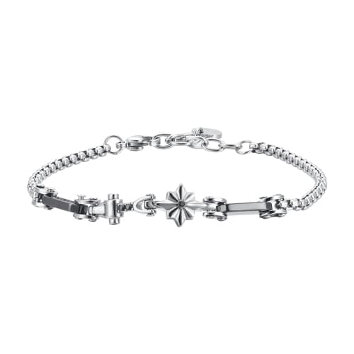 Bracciale Uomo Luca Barra BA1790 Bracciale Uomo in acciaio con rosa dei venti con cristallo nero ed elementi in ceramica nera. Lunghezza: 19 + 3 cm. Misura rosa dei venti: 16 x 9 mm. Diametro cristallo: 1 mm. Spessore maglia: 3 mm. Scopri il perfetto equilibrio tra stile e simbolismo con questo bracciale da uomo in acciaio. Caratterizzato da un’affascinante rosa dei venti al centro, questo bracciale rappresenta la ricerca di nuove avventure e direzioni. Il cristallo nero aggiunge un tocco di mistero e sofisticatezza, mentre gli elementi in ceramica nera completano il design con un accento moderno e robusto. Referenza: BA1790 Articolo spedito con garanzia ed astuccio originale Luca Barra