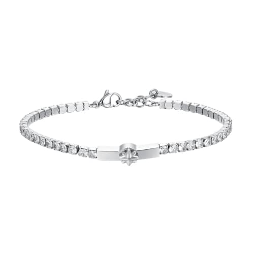Bracciale Uomo Luca Barra BA1812 Bracciale Uomo tennis in acciaio con piastra con rosa dei venti e zirconi bianchi. Lunghezza: 19 + 3 cm. Misura piastra: 20 x 6,5 mm. Diametro zircone: 3 mm. Spessore maglia: 3 mm. Esplora nuovi orizzonti con questo elegante bracciale tennis da uomo in acciaio, arricchito da una raffinata piastra centrale decorata con l’iconica rosa dei venti, simbolo di guida e avventura. I zirconi bianchi incastonati sulla piastra aggiungono un tocco di brillantezza e raffinatezza, creando un accessorio perfetto per l’uomo moderno che ama viaggiare e scoprire nuove direzioni. Referenza: BA1812 Articolo spedito con garanzia ed astuccio originale Luca Barra