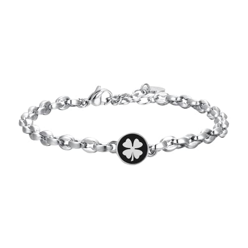 Bracciale Uomo Luca Barra BA1825 Bracciale Uomo in acciaio con quadrifoglio con smalto nero. Lunghezza: 19 + 3 cm. Misura elemento: 10 x 3 mm. Spessore maglia: 5 mm. Rappresenta un legame eterno e il tuo stile personale con questo elegante bracciale da uomo in acciaio, caratterizzato dal simbolo dell’infinito. Questo design moderno è arricchito da smalto nero, che crea un contrasto audace con la lucentezza dell’acciaio, rendendolo un accessorio perfetto per l’uomo contemporaneo che cerca di esprimere la propria individualità. Referenza: BA1825 Articolo spedito con garanzia ed astuccio originale Luca Barra