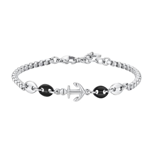 Bracciale Uomo Luca Barra BA1876 Bracciale uomo in acciaio con ancora ed elementi in acciaio IP nero. Lunghezza: 19 + 3 cm. Misura ancora: 9 x 13 mm. Questo bracciale in acciaio IP nero con ancora e dettagli raffinati dona un tocco di eleganza e simbolismo, un gioiello perfetto per chi ama uno stile ricercato. Referenza: BA1876 Articolo spedito con garanzia e astuccio Luca Barra
