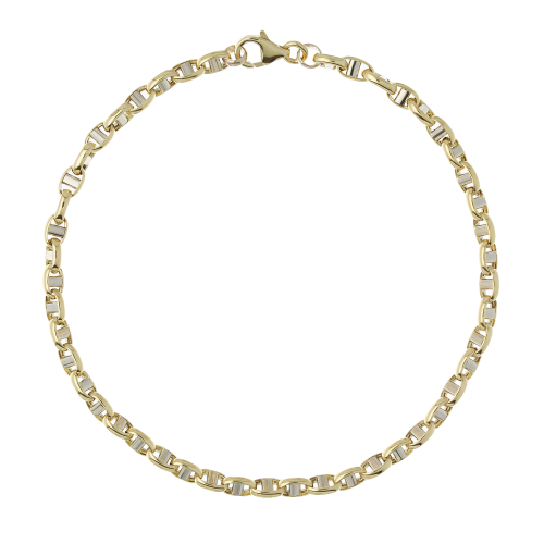 Bracciale Uomo Oro Bianco Giallo GL101954 Bracciale da uomo in oro bianco e giallo 750 (18 KT). Bracciale a catena maglia marina tubolare, larghezza 0,35 cm. La lunghezza del bracciale è di 21 cm. Il peso del bracciale è di 3,80 grammi. Referenza: GL101954 Un accessorio elegante e versatile che unisce la raffinatezza dell’oro bianco e l’intramontabile fascino dell’oro giallo. Questo bracciale si abbina perfettamente a orologi dal cinturino in metallo o in pelle, per un look completo e armonioso. Ottimo come regalo per celebrare traguardi importanti o per arricchire la tua collezione di gioielli con un pezzo dal design esclusivo.