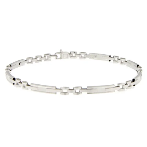 Bracciale Uomo Oro Bianco GL101229 Bracciale da uomo in oro bianco 750/00 (18kt). La maglia del bracciale è semirigida. La larghezza massima della maglia è di 0.30 cm. La lunghezza del bracciale è di 21 cm. Il peso del bracciale è di 5.60 grammi. Referenza: GL101229