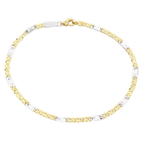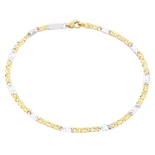 Bracciale Uomo Oro Giallo Bianco GL-SONMML080GB21 Bracciale da uomo in oro giallo e bianco 750/00 (18kt). La maglia del bracciale è a catena piena. La larghezza massima della maglia è di 0.25 cm. La lunghezza del bracciale è di 21 cm. Il peso del bracciale è di 3.80 grammi. Referenza: GL-SONMML080GB21
