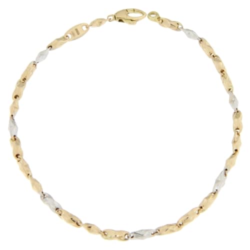 Bracciale Uomo Oro Giallo Bianco GL100563 Bracciale da uomo in oro giallo e bianco 750/00 (18kt). La maglia del bracciale è a catena maglia tubolare. La larghezza della maglia è di 0.30 cm. La lunghezza del bracciale è di 20.50 cm. Il peso del bracciale è di 3.80 grammi. Referenza: GL100563