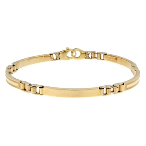 Bracciale Uomo Oro Giallo Bianco GL101230 Bracciale da uomo in oro giallo e bianco 750/00 (18kt). La maglia del bracciale è semirigida. La larghezza massima della maglia è di 0.40 cm. La lunghezza del bracciale è di 21 cm. Il peso del bracciale è di 11.40 grammi. Referenza: GL101230
