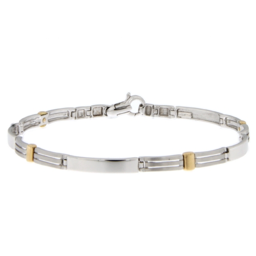 Bracciale Uomo Oro Giallo Bianco GL101235 Bracciale da uomo in oro giallo e bianco 750/00 (18kt). La maglia del bracciale è semirigida. La larghezza massima della maglia è di 0.40 cm. La lunghezza del bracciale è di 20 cm. Il peso del bracciale è di 11.90 grammi. Referenza: GL101235