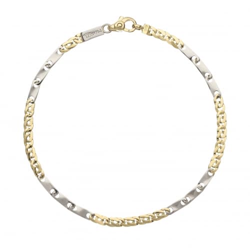 Bracciale Uomo Oro Giallo Bianco GL101512 Bracciale da uomo in oro giallo e bianco 750/00 (18kt). La maglia del bracciale è a catena piena piatta. La larghezza del bracciale è di 0.35 cm. La lunghezza del bracciale è di 20 cm. Il peso del bracciale è di 4.50 grammi. Referenza: GL101512