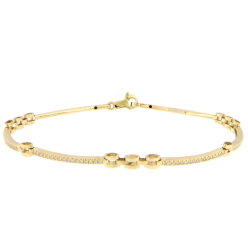 Bracciale Uomo Oro Giallo GL101298 Bracciale da uomo in oro giallo 750/00 (18kt). La maglia del bracciale è semirigida con pietre zirconi bianchi. La larghezza massima della maglia è di 0.30 cm. La lunghezza del bracciale è di 20 cm. Il peso del bracciale è di 5.30 grammi. Referenza: GL101298