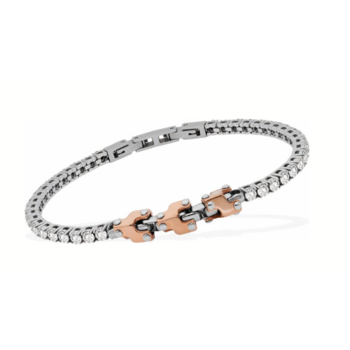 Bracciale Uomo Tonino Lamborghini TL0047 Bracciale da uomo Tonino Lamborghini. Bracciale tennis in acciaio e PVD oro rosa con pietre zirconi bianchi, lunghezza regolabile 21 cm. Referenza: TL0047 Questo bracciale da uomo Tonino Lamborghini, è l’emblema di un’eleganza audace e contemporanea. Un accessorio iconico, pensato per l’uomo che non accetta compromessi sul proprio stile. Articolo spedito con astuccio e garanzia Tonino Lamborghini