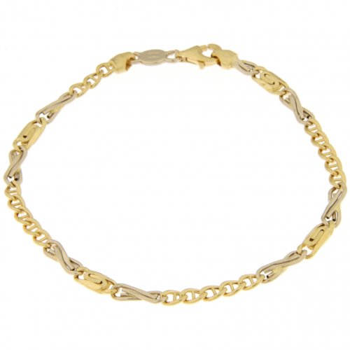 Bracciale Uomo Unoaerre Oro Giallo Bianco GL100112 Bracciale Unoaerre da uomo in oro giallo e bianco 750/00 (18 kt). La maglia del bracciale è a catena modello marina piatta e lumachina alternata con lavorazione lucida. La lunghezza del bracciale è di 19 cm. La larghezza della maglia è di 0,40 cm. Il peso del bracciale è di 3,70 grammi. Referenza: GL100112