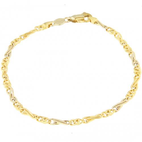 Bracciale Uomo Unoaerre Oro Giallo Bianco GL100113 Bracciale Unoaerre da uomo in oro giallo e bianco 750/00 (18 kt). La maglia del bracciale è a catena modello tigre alternata con lavorazione lucida. La lunghezza del bracciale è di 20 cm. La larghezza della maglia è di 0,40 cm. Il peso del bracciale è di 4,30 grammi. Referenza: GL100113