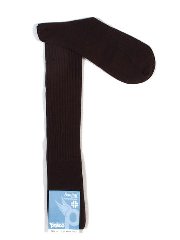 Calzini lunghi sanitari da uomo con lana di Prisco; art. Sanital Lungo Lana.Calza realizzata con il 50% di lana costa larga e rimagliata a mano.I medici consigliano questa calza per le sue provate caratteristiche sanitarie, concentrate nel polsino ottenuto senza limpiego di fibre elastiche nocive ai disturbi circolatori.Disponibile nelle taglie 10,5 (39/40) – 11 (40/41) – 11,5 (41/42) – 12 (42/43) – 13 (43/44) nei colori grigio, bianco, nero, bordeaux, blu e marrone.