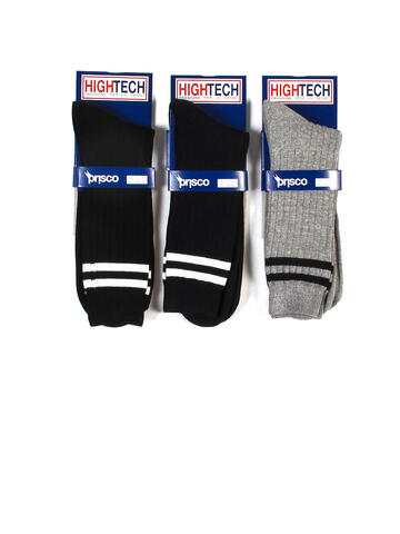 Calzini sportivi da uomo realizzato a tinta unita con 2 righe orizzontali nella parte finale.Calza sportiva hightech, passione per lo sport con soletta in spugna.Disponibile nelle taglie 10,5-11 (40-41), 11,5-12 (42-43), 12,5-13 (44-45) nei colori bianco e Assortito (a seconda del quantitativo richiesto saranno inviati colori assortiti tra grigio melange, nero e blu scuro)