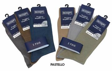 Calzino corto da uomo realizzato in filo di Scozia e rimagliata a mano.Confezione da 3 paia di calzini corti.Disponibile nelle taglie 10,5/11 (40/41) – 11,5/12 (42/43) – 12,5/13 (44/45) e nei colori Blu, Nero , Pastello e Classico (1 Nero + 1 Blu + 1 Fumo)