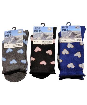 Calzino corto donna in caldo pile fantasia cuori.COLORI ASSORTITI A SECONDA DEL QUANTITATIVO RICHIESTOLINEA AUTUNNO INVERNOTaglia unica: 35/4