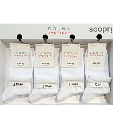 Calzino donna donna taglio vivo in cotone elasticizzato tinta unita. TRI-PACKTaglia unica: 35/40Disponibile nei colori Bianco e Nero