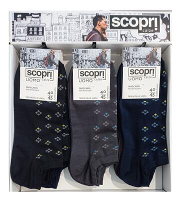 Calzino corto uomo bike in cotone elasticizzato mercerizzato fantasia con punta e tallone rinforzato. 1 PAIOCOLORI ASSORTITI A SECONDO DEL QUANTITATIVO RICHIESTOTaglia unica: 40/45