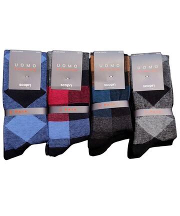 Calzino LUNGO uomo in cotone caldo elasticizzato con motivo a rombi e quadri. TRI-PACKCOLORI ASSORTITILINEA AUTUNNO INVERNOTaglia unica: 40/45