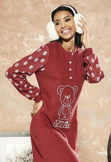 Camicia da notte a serafino in CALDO jersey di cotone lanato ( punto Milano) con stampa.Taglie: S-M-L-XL