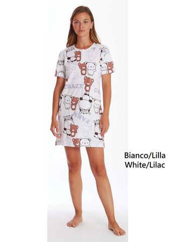 Camicia da notte a manica corta con apertura a serafino in jersey di cotone con stampa Crazy Farm.Taglie: M – L – XL