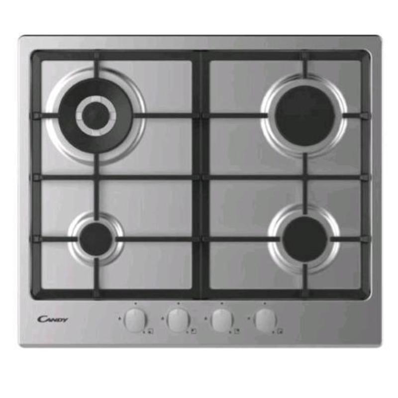 Candy chg6br4wx piano cottura ad incasso a gas in acciaio inox 4 fuochi larghezza 60 cm grigio