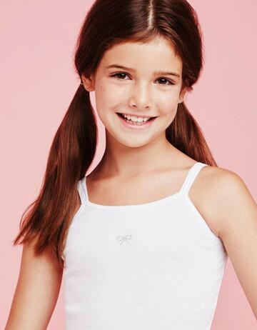 Canottiera bambina a spallina stretta in jersey di puro cotone con decoro strass.Questa linea intima è stata realizzata con un filato di puro cotone che garantisce alla pelle assoluta traspirazione.Disponibile solo in colore bianco nelle taglie:2 anni (92 cm)3 anni (98 cm)4 anni (104 cm)5 anni (110 cm)