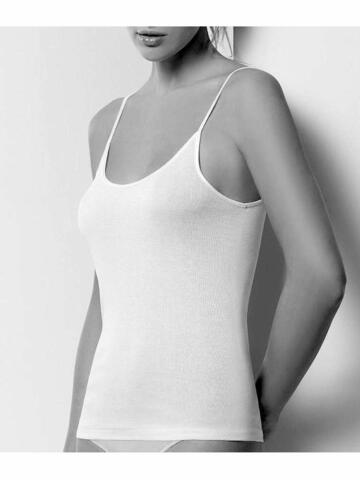 Canottiera donna Emmebivi art. 13831Canottiera donna a spalla stretta in Filo di Scozia con profilo in raso elasticizzato.Composizione: 100% Filo di Scozia Disponibile nei colori Bianco e NeroTaglie: 2-3-4-5-6-7