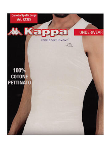 Canottiera da uomo di Kappa; art. K1325.La canotta è a spalla larga e realizzata in 100% cotone pettinato.Disponibile nelle taglie S – M – L – XL – XXL nei colori bianco e nero.