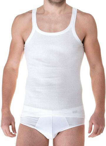 Canottiera uomo a spalla stretta in jersey di cotone a costine 1:1Made in Italy.Taglie: 4/M – 5/L – 6/XL – 7/XXL e nei colori Bianco, Azzurro e Blu