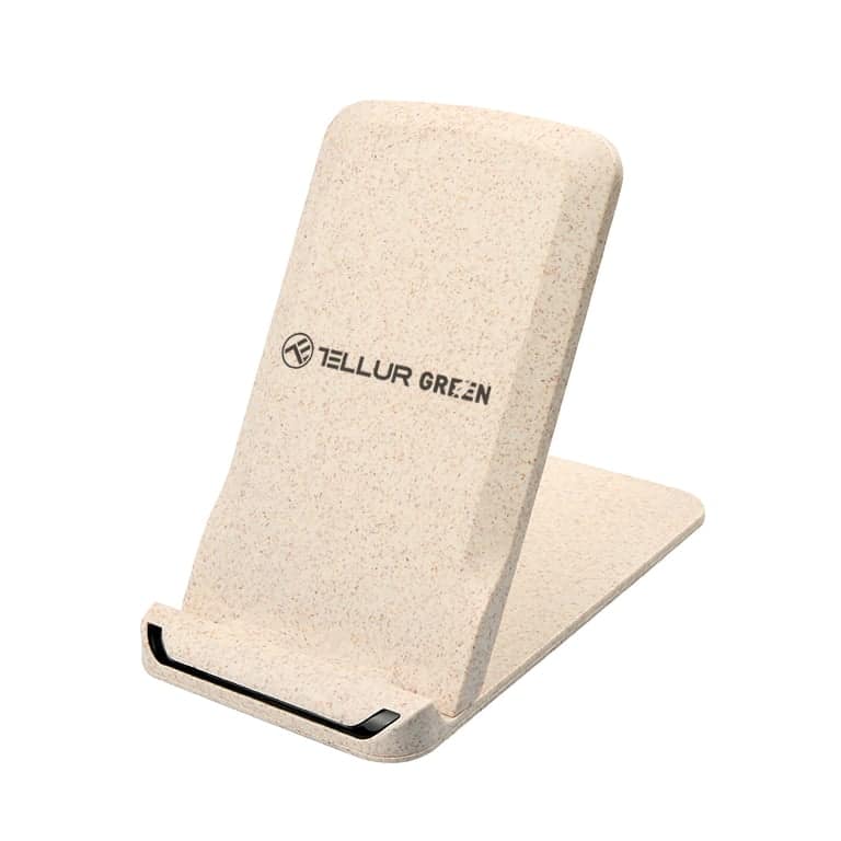 Caricatore da tavolo wireless veloce Tellur Green Qi, 15W, certificato Qi, pieghevole, paglia di grano, crema – nuovo