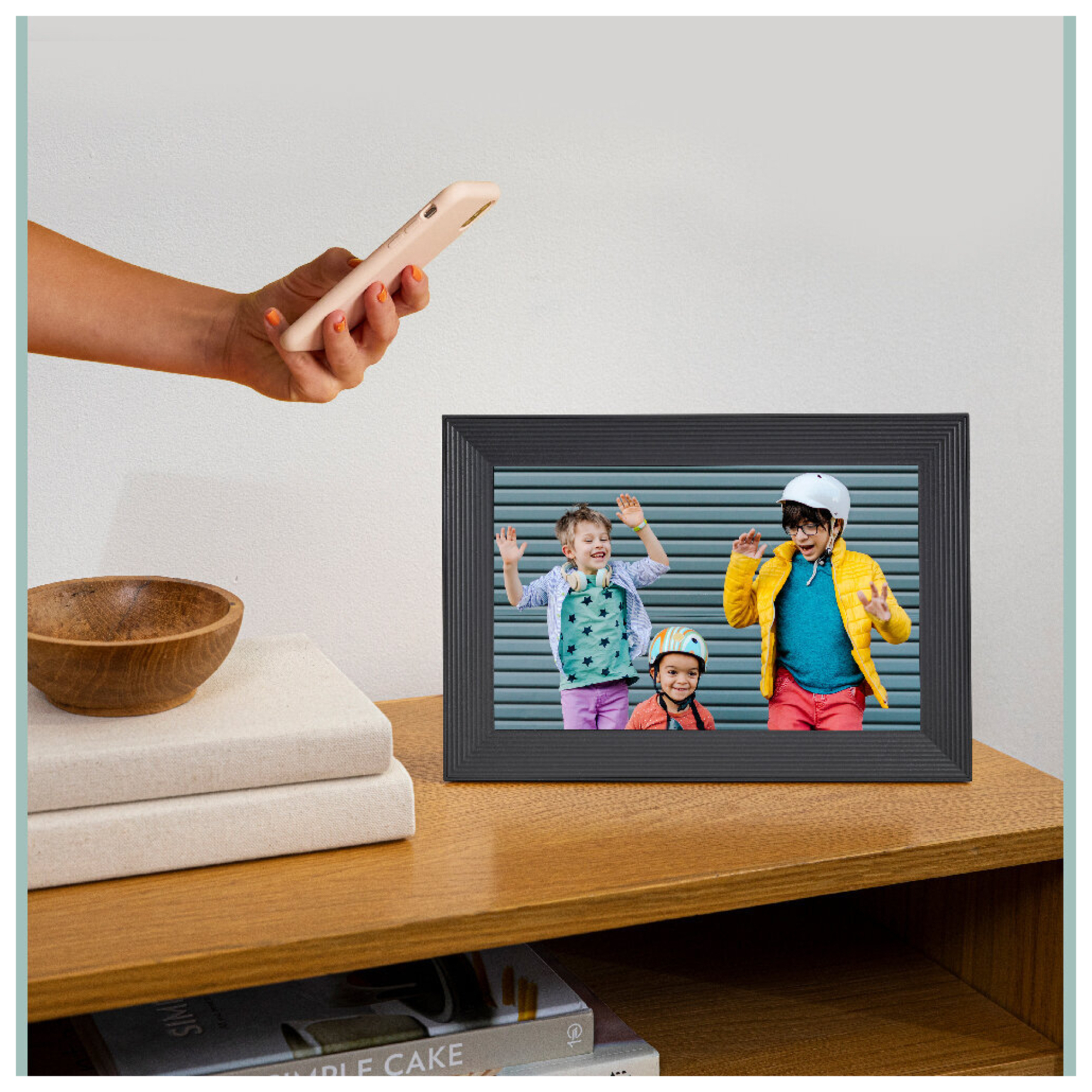Semplicità e condivisione Scattare, condividere e visualizzare foto e video con l’altoparlante integrato, da qualsiasi parte del mondo, utilizzando l’app gratuita Aura. Rimanete in contatto con amici e familiari – Archiviazione illimitata Aggiungete tutte le foto e i video (massimo 30 secondi) che volete alla vostra cornice e invitate tutti quelli che conoscete a fare lo stesso. Il tutto senza rischi, grazie al server sicuro. Applicazione dedicata L’applicazione AURA è gratuita, intuitiva e accessibile anche ai principianti e dispone di numerose funzioni, come il ritaglio intelligente per una visualizzazione ottimale delle foto in formato orizzontale. – Il regalo ideale Aggiungete un messaggio personalizzato, selezionate le foto e invitate in anticipo i vostri familiari/amici per arricchire il contenuto fotografico della cornice.- Display HD Le cornici AURA sono dotate di una tecnologia di visualizzazione all’avanguardia, con uno schermo LCD ad alte prestazioni che garantisce un’eccezionale qualità dell’immagine e regola la luminosità in base all’ambiente in cui viene collocato – Touch Bar interattiva Scorrere le foto, inviare mi piace ad amici e parenti direttamente dalle loro foto tramite la Touch Bar orizzontale della cornice Aura Carver. Caratteristiche ? Orientamento: funziona in modalità verticale? Dimensioni: 26,7 cm x 18,6 cm x 5,4 cm ? Peso: 1 kg ? Dimensioni dello schermo: 25,7 cm ? Risoluzione: 1280 x 800 ? Angolo di visione: 89° ? Altoparlante incorporato ? Dimensioni dell’imballaggio: 31,7 (L) x 8,6 (P) x 23,2 (H) cm ? Peso dell’imballaggio: 2 kg ? PCB: 5 unità ? Dimensioni del cartone: 46 (L) x 34,5 (P) x 27 (H) cm – Prodotto nuovo