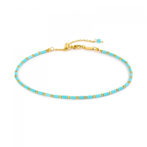 Cavigliera Marlù 20CV082G-T Cavigliera con perline a tubo turchesi alternate ad elemento sfaccettato in ematite. Vicino al moschettone si trova una tag ovale con il logo Marlù. Lunghezza totale 26 cm regolabile tramite cursore da 26 cm a 21,5 cm. Sfera turchese presente all’ estremità. Referenza: 20CV082G-T Articolo spedito con astuccio originale Marlù