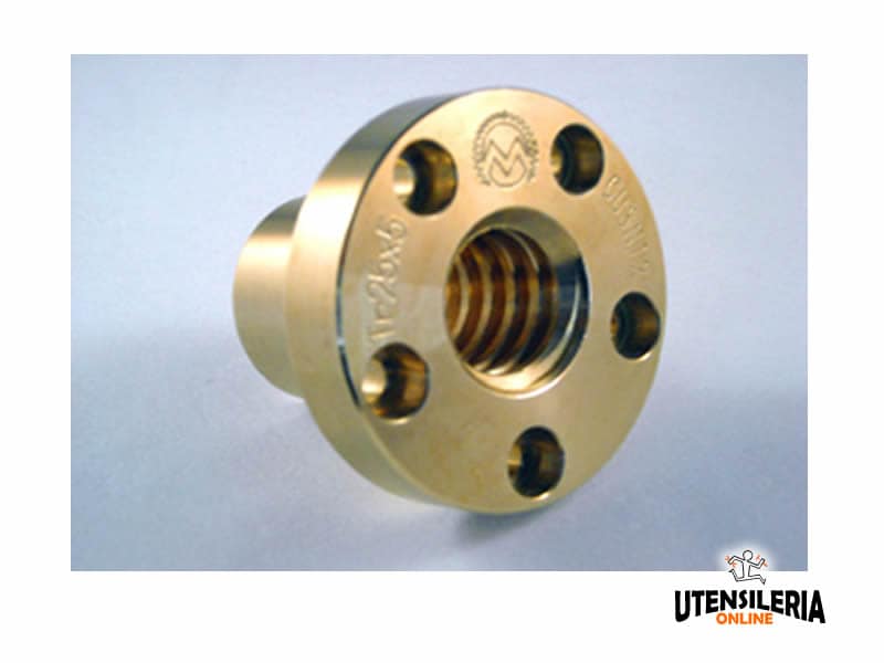 Madreviti in bronzo CuSn12 con filettatura Trapezoidale per viti senza fine. Materia prima Bronzo CuSn12 UNI 7013-72 – Principi di filetto 1 – Tolleranze boccola D1 h7 – DL,DS,L1,L