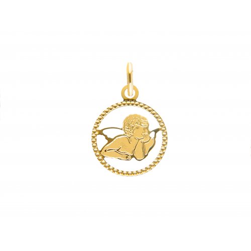 Ciondolo unisex in oro giallo 750/00 (18kt), con angioletto inciso, diametro 1,40 cm, peso 0,60 grammi. Referenza: 245591