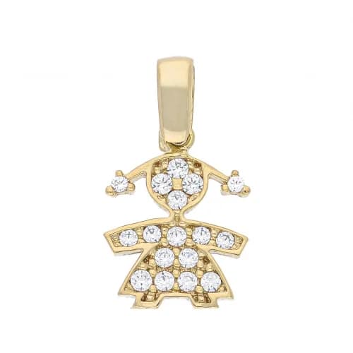 Ciondolo Bimba Oro Giallo GL101564 Ciondolo unisex in oro giallo 750/00 (18 kt). Ciondolo a forma di bimba con pietre zirconi, dimensioni 1.00 x 0.90 cm. Il peso del ciondolo è di 1.00 grammi. Referenza: GL101564