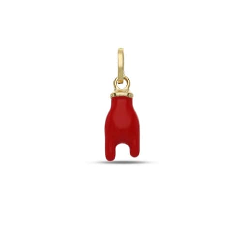 Ciondolo Corna Manina Oro Giallo GL101821 Ciondolo unisex in oro giallo 750/00 (18 kt). Ciondolo a forma di mano con corna smaltate rosse, dimensioni 0.70 x 1.20 cm. Il peso del ciondolo è di 0.90 grammi. Referenza: GL101821